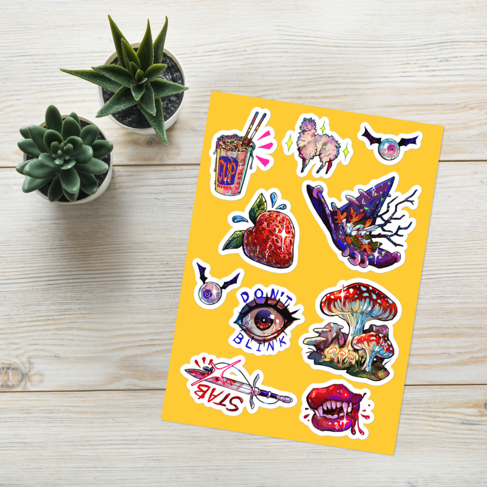 Some spooky and Whimsical stickers to put on your sketchbook, water bottle, or forehead.